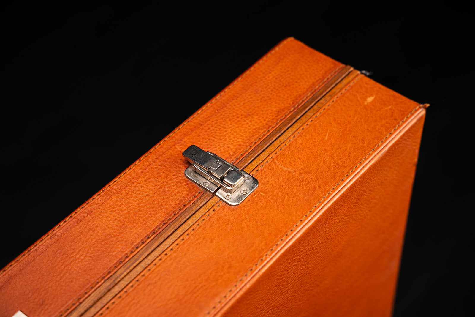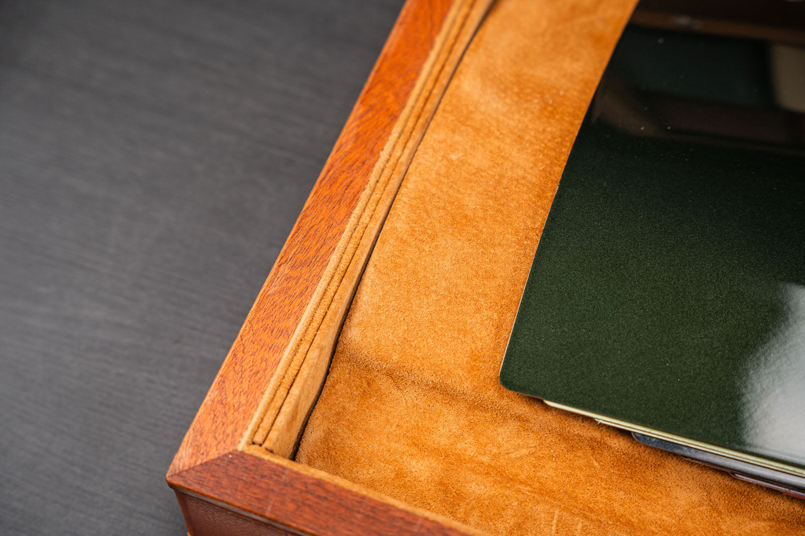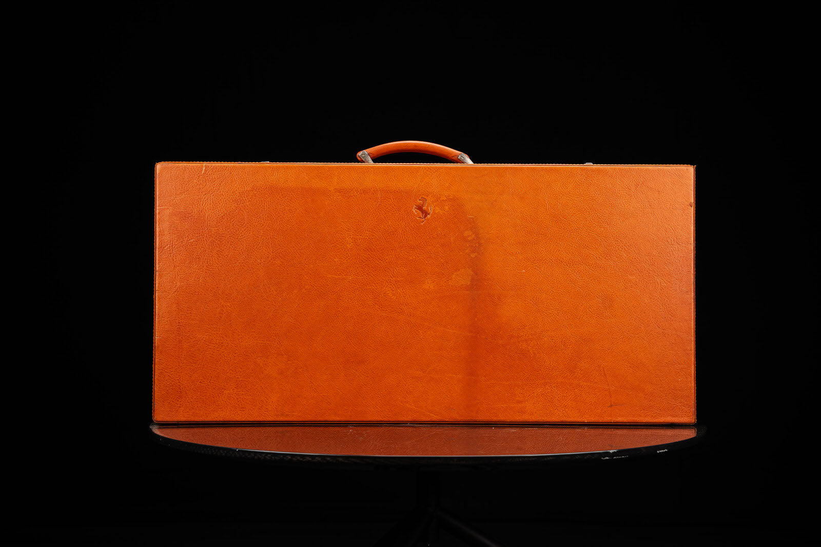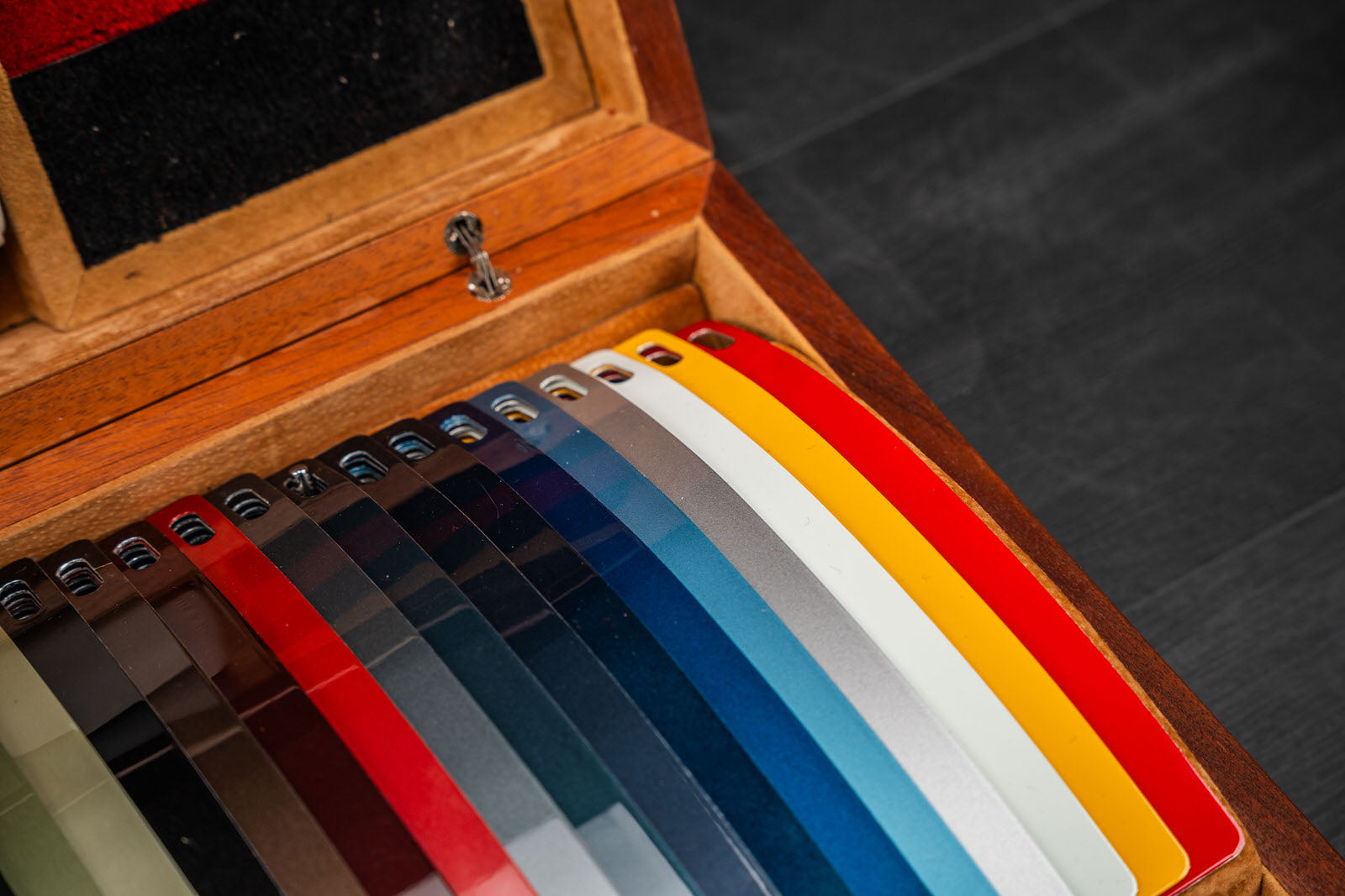 A rare leather-bound presentation case by Schedoni for Ferrari dealers in the 1990s, containing paint, leather, fabric, carpet, and stitching samples. Used to help clients configure their cars before digital tools, it’s a collectible piece of Ferrari craftsmanship and showroom history.
