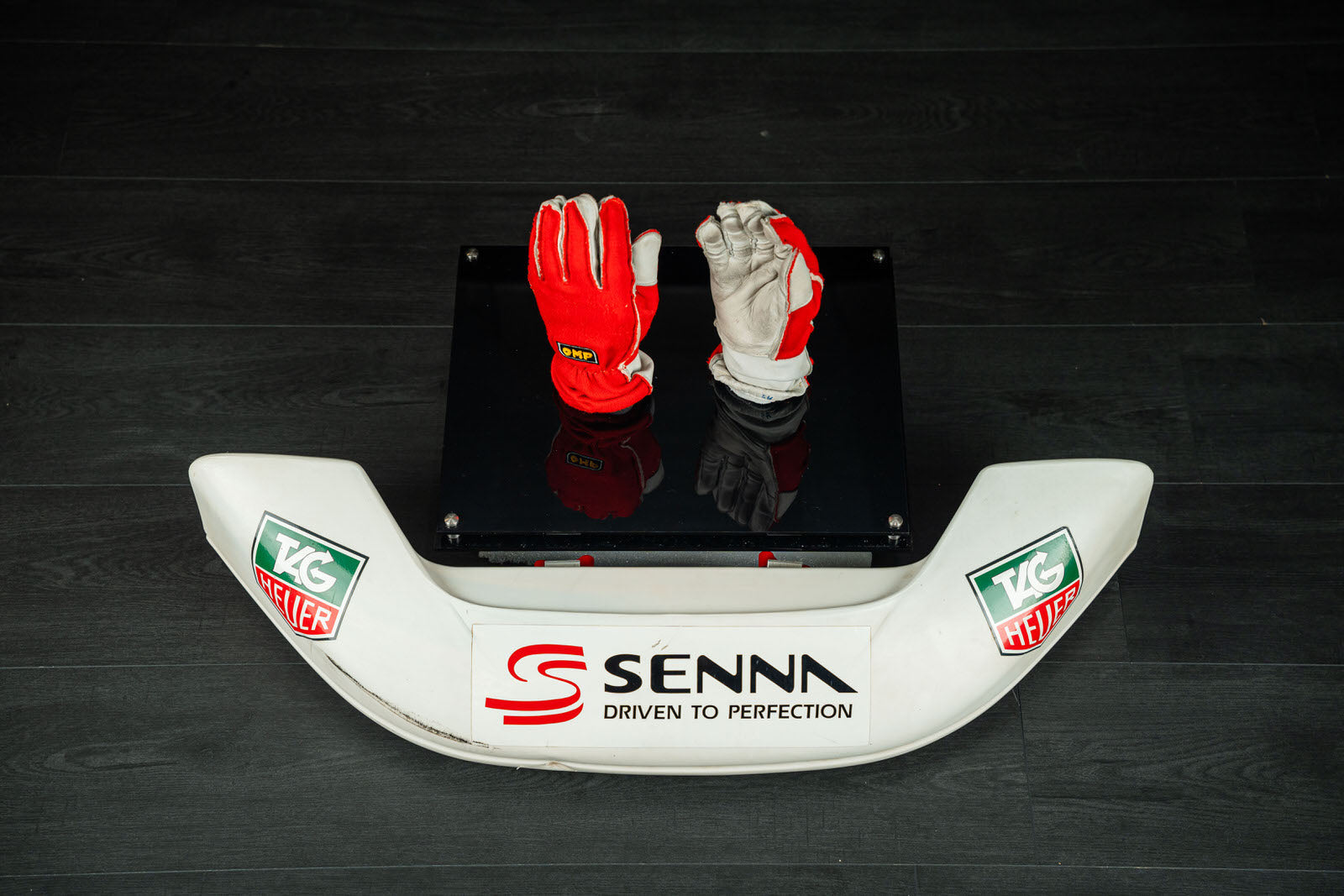 Held at the Bois de Boulogne in Paris, the 1993 Race of Champions was a head-to-head motorsport event featuring top drivers from various disciplines. Ayrton Senna and Alain Prost made a rare appearance together, and the rest is History....like the two piece we have, the go Kart nose and gloves used by Ayrton Senna!!!!!!
