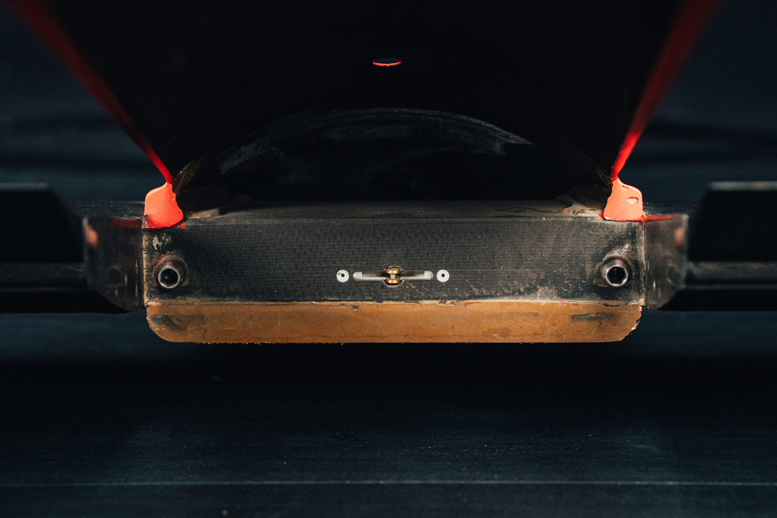A sleek, red aerodynamic nose from the Ferrari 641, used by Alain Prost during the 1990 Formula 1 season. Made of carbon fiber, this nose and wing features sponsor decals like Agip and Goodyear, and the iconic Ferrari logo. A symbol of performance and design from a legendary F1 era.